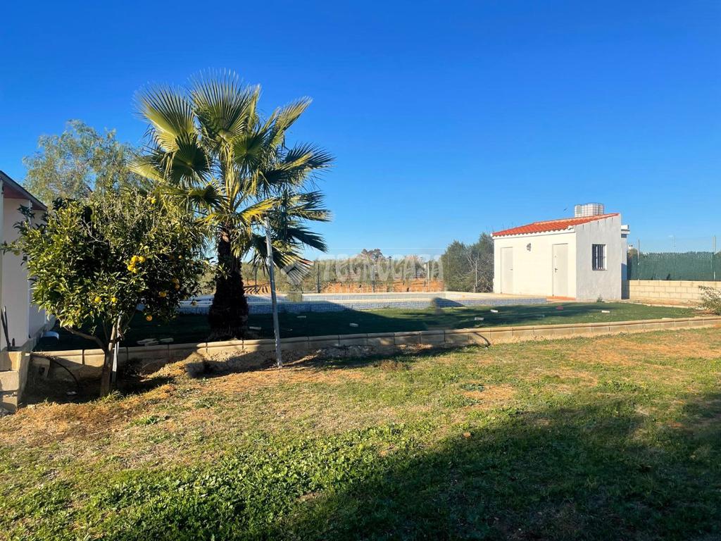 La parcela dispone de 1250m². En ellos encontramos una piscina de 55 m², vivienda de 33m², baños de piscina y un porche aprox de 30m², también cuenta con zona de barbacoa en el exterior y pozo que suministra el agua