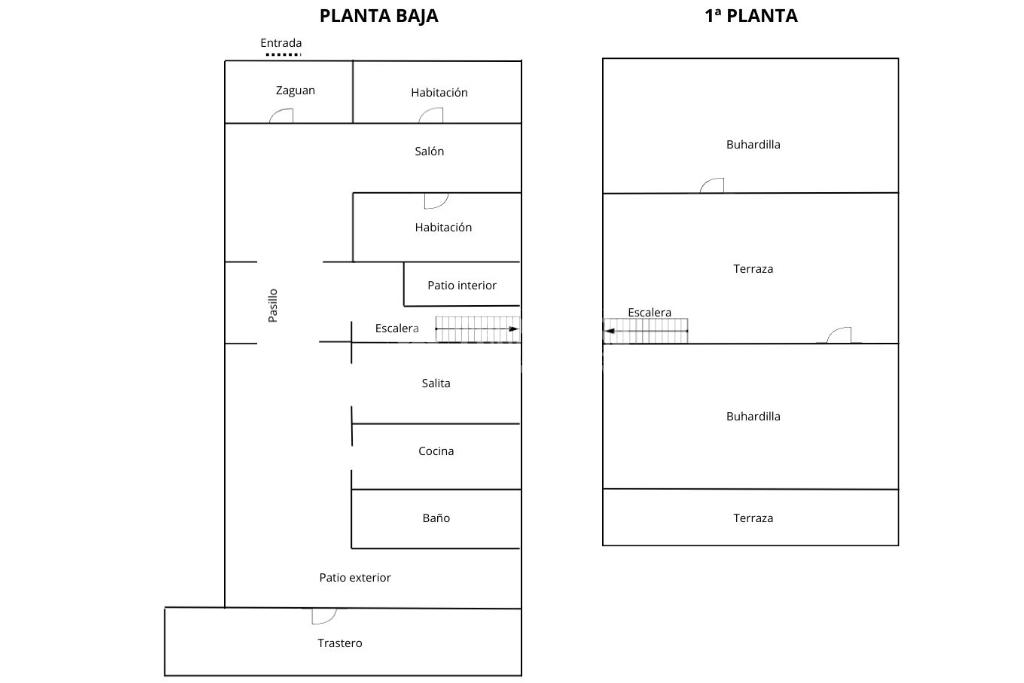 La casa tiene 2 dormitorios, salón, salita, cocina amueblada, baños con placa de ducha, patio interior y exterior, trastero y dos buhardillas.